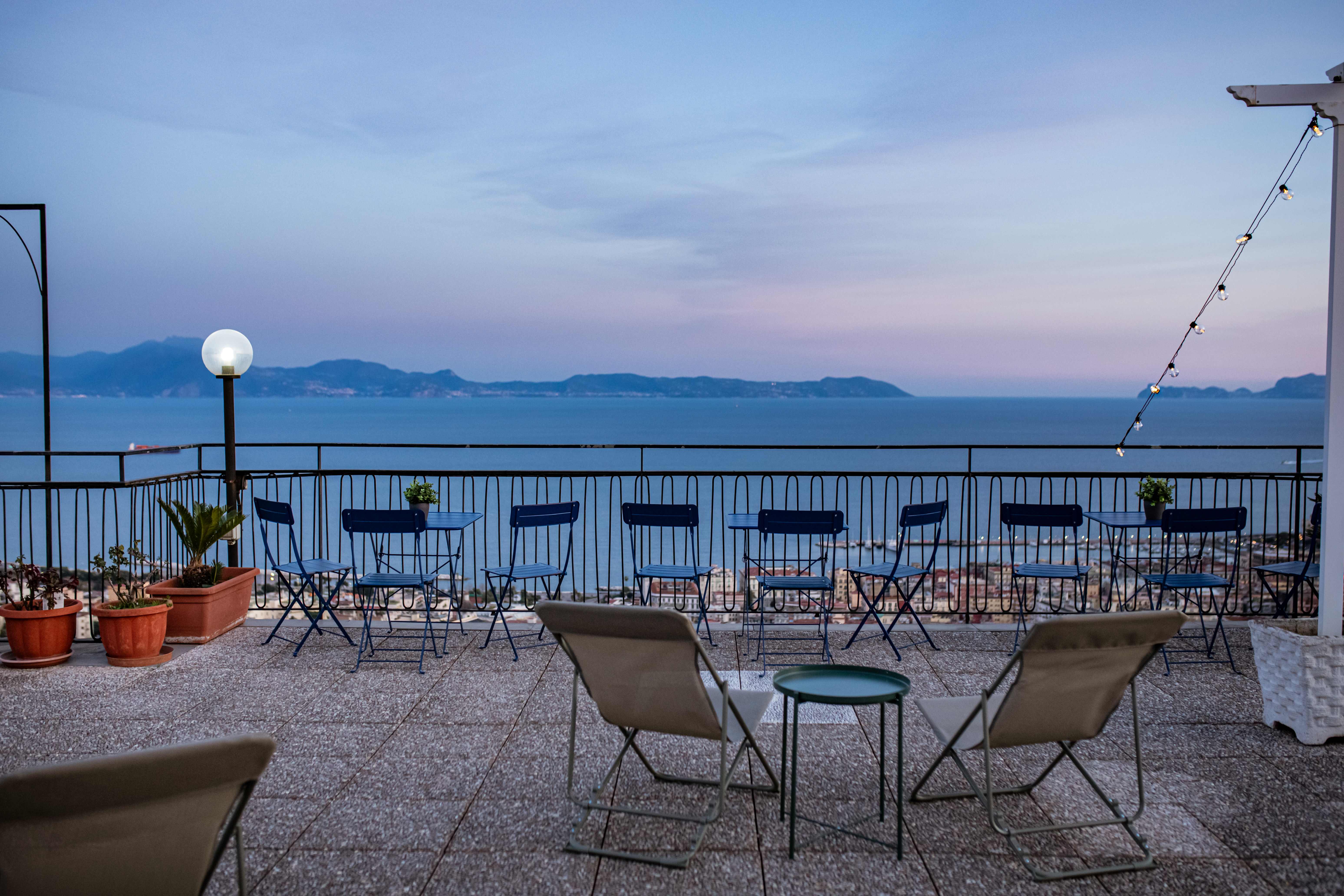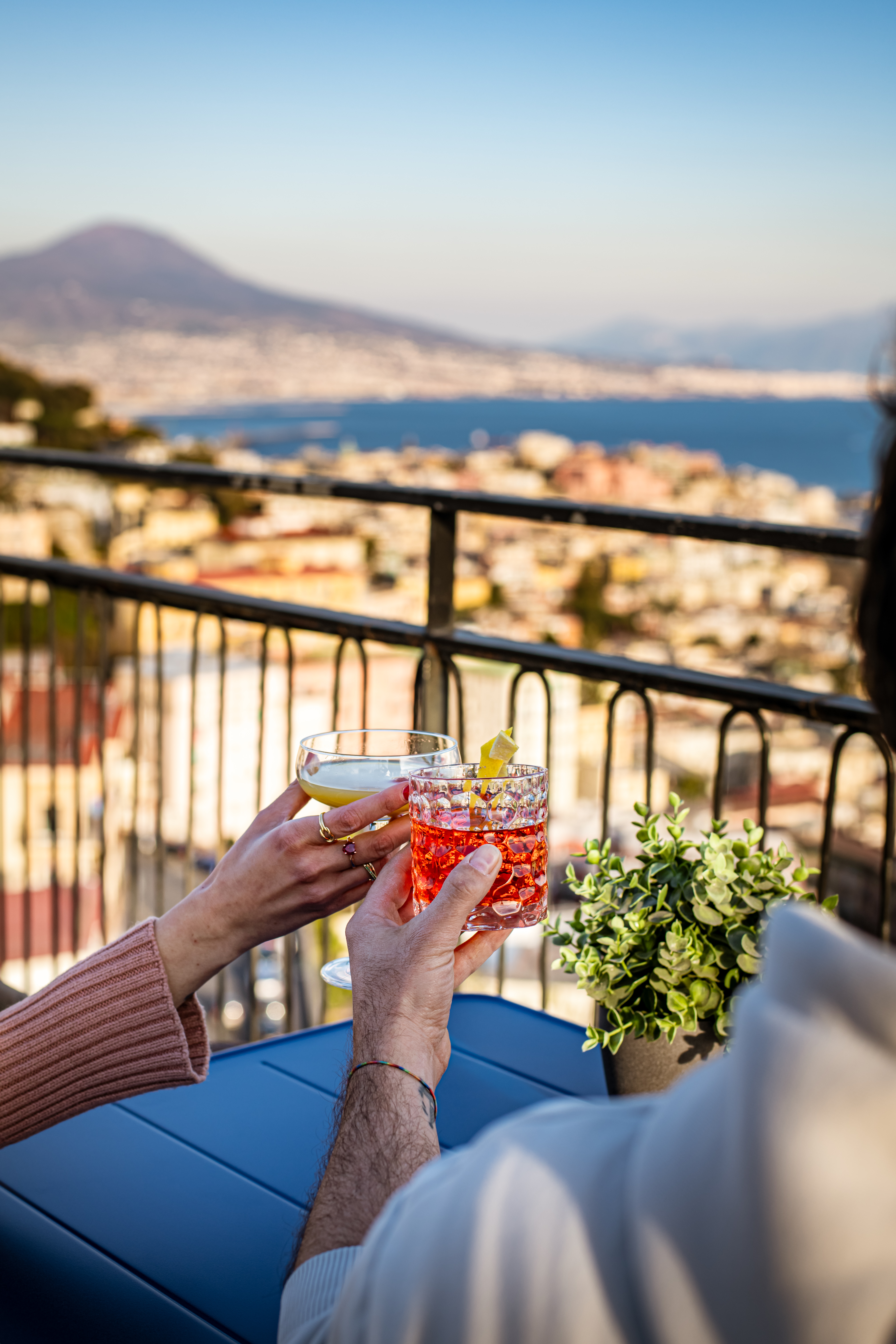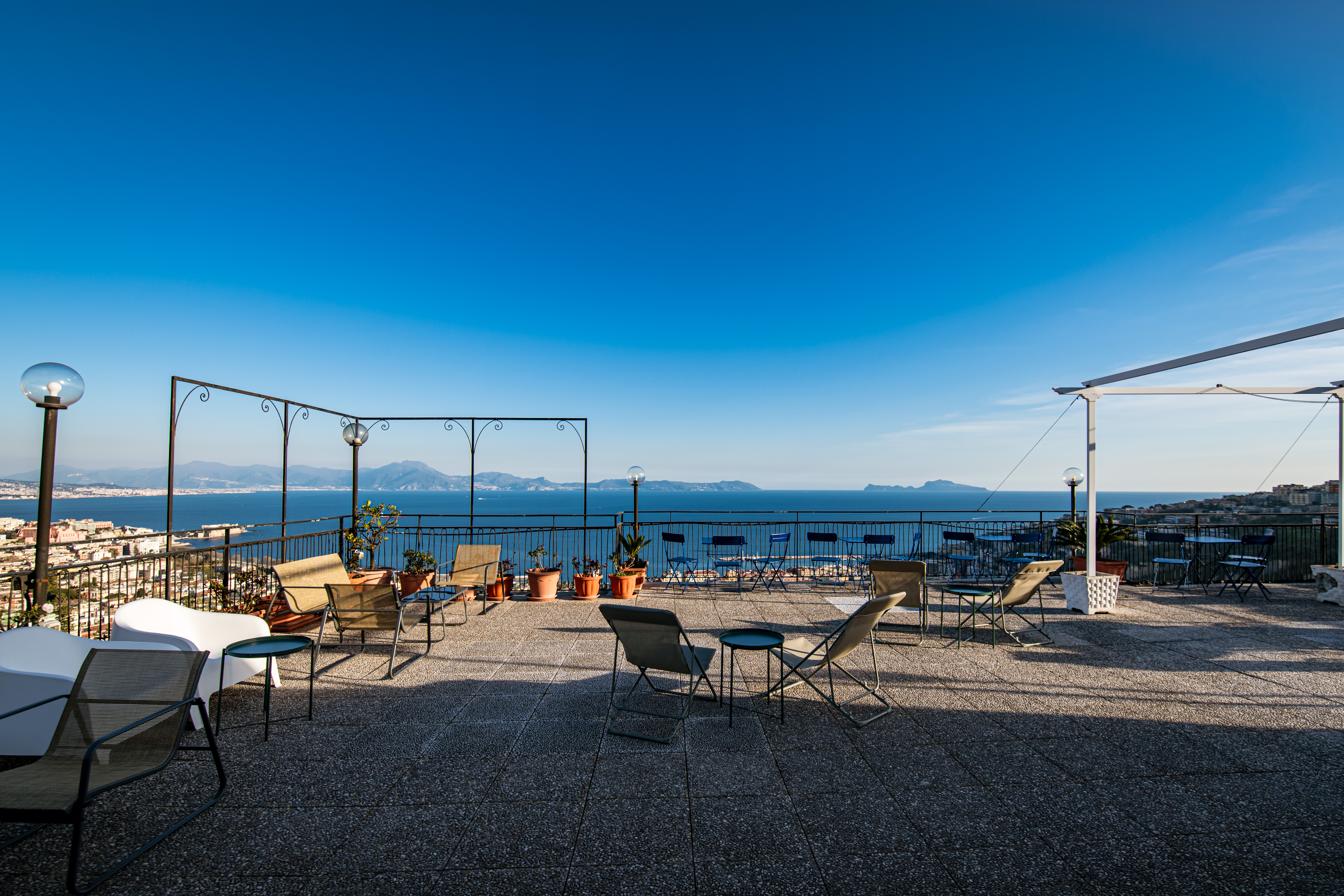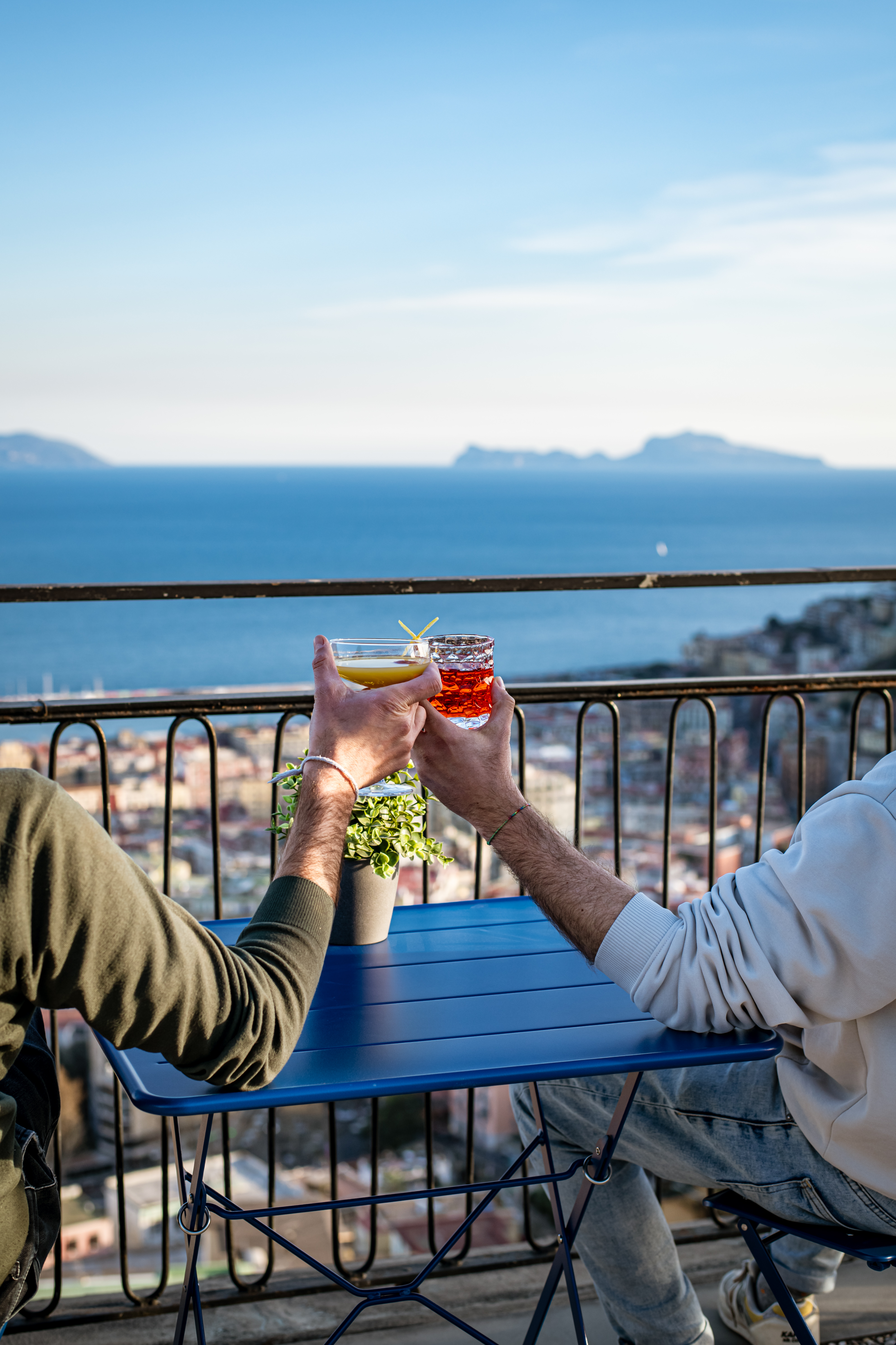 Blue Rooftop, nel cuore del Vomero, è una terrazza sospesa tra cielo e mare, con vista sul Golfo di Napoli, Capri e il Vesuvio.