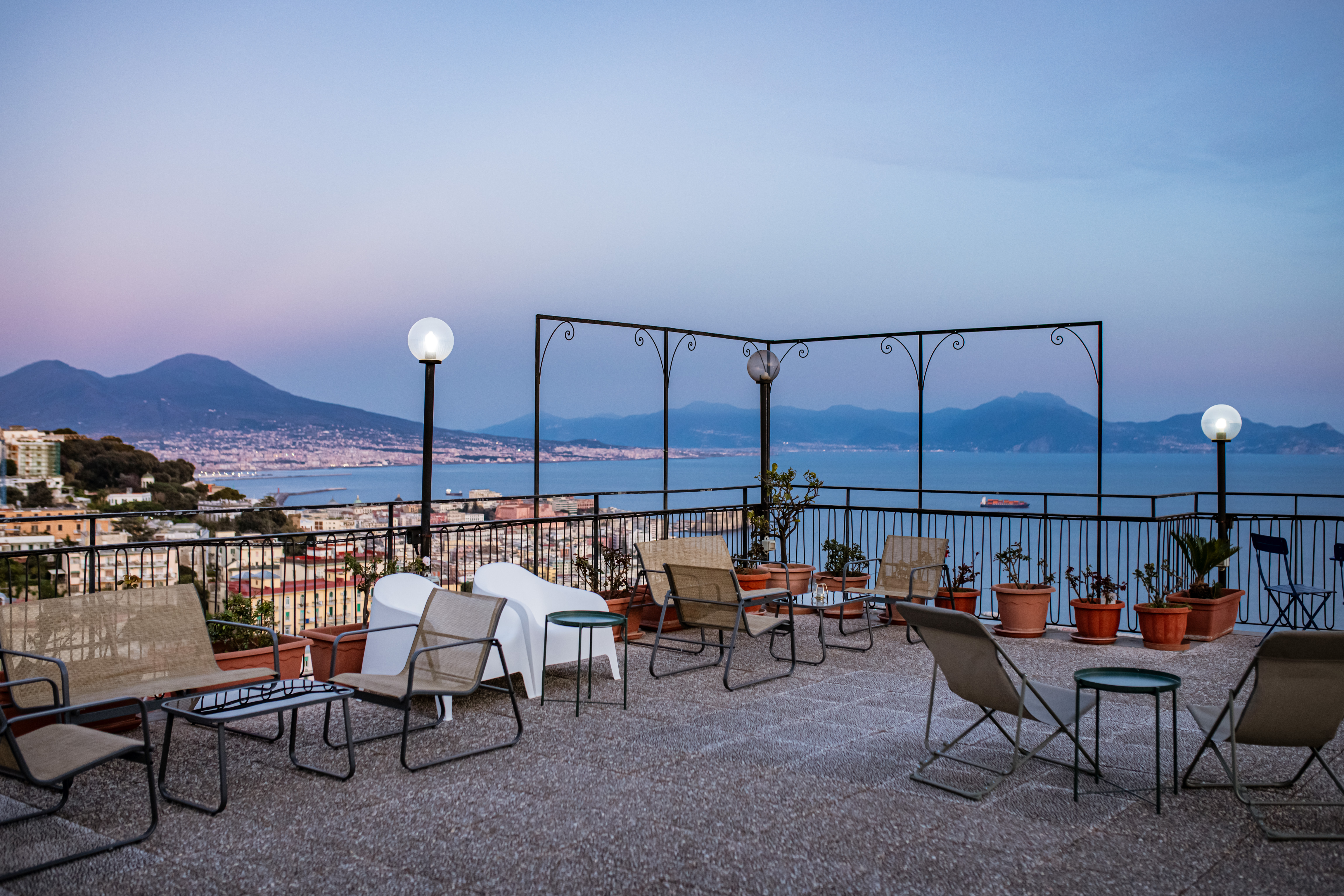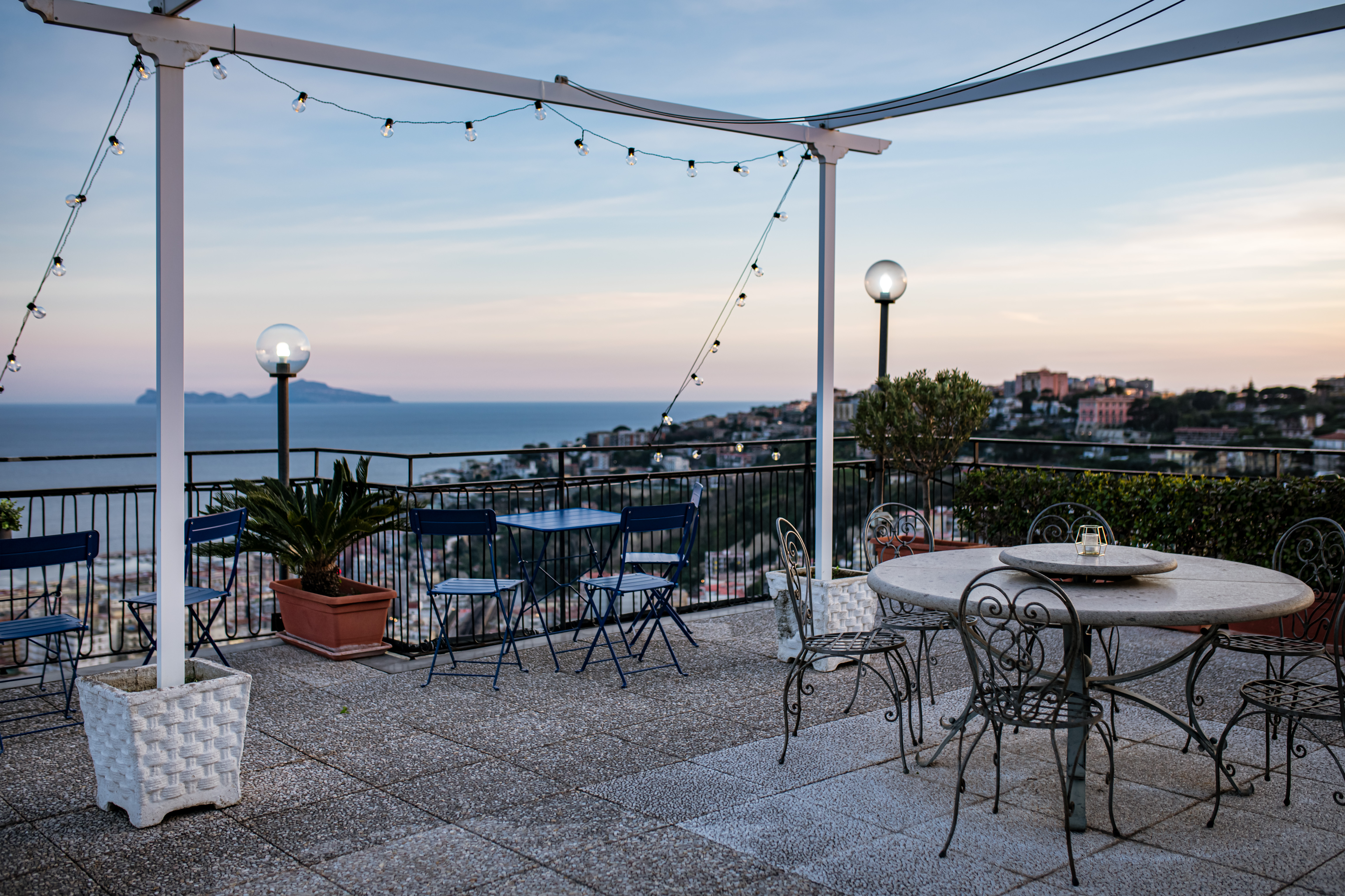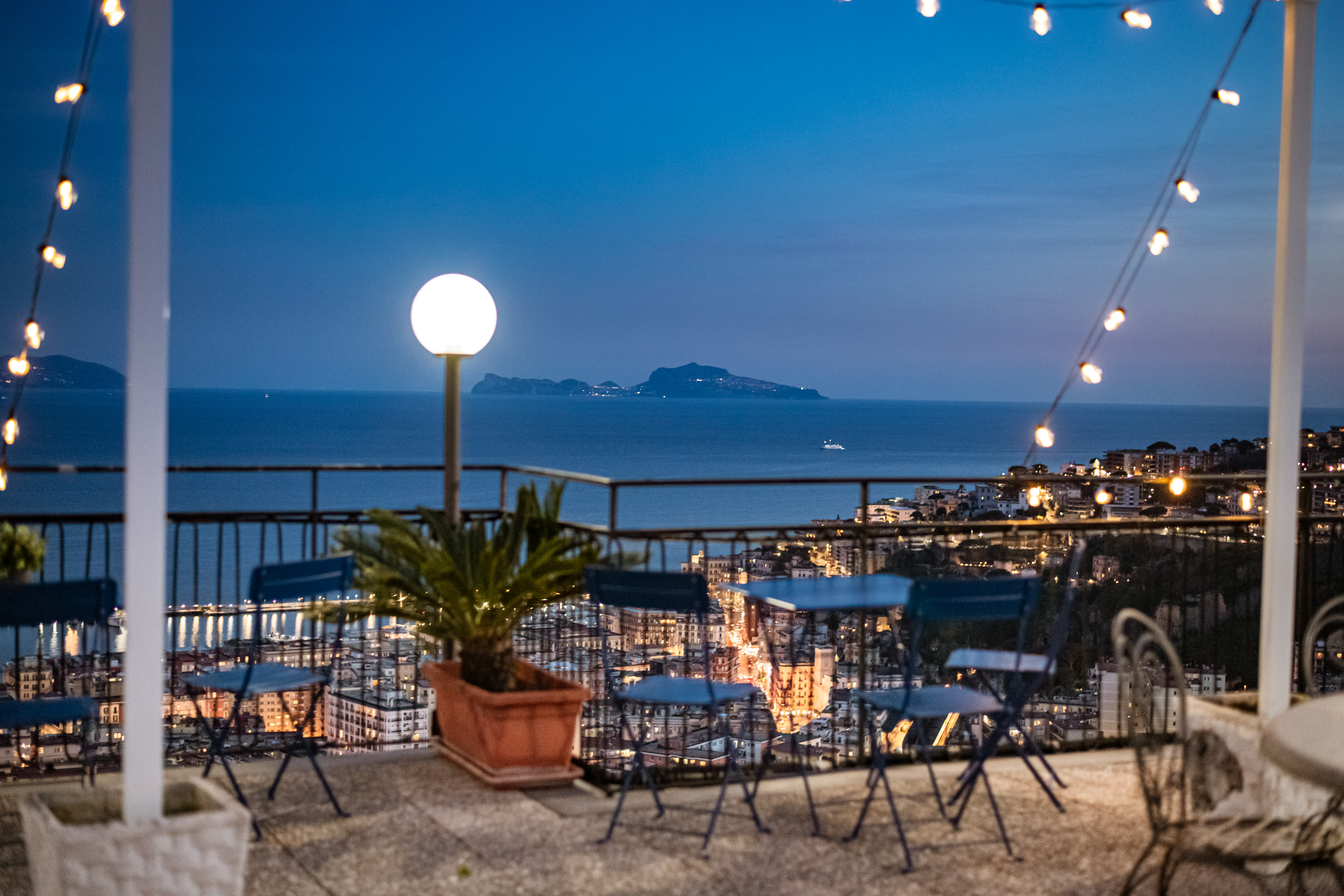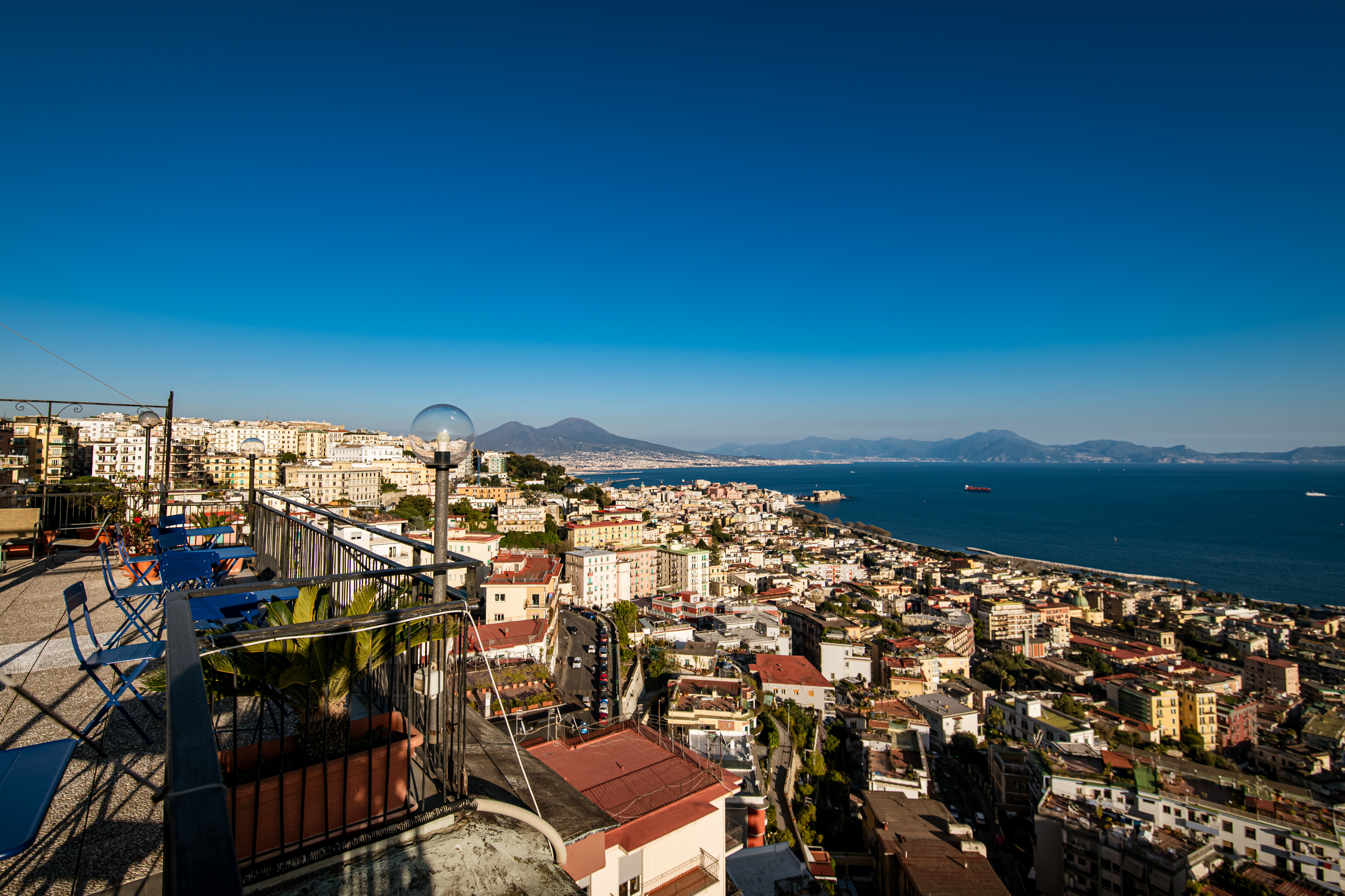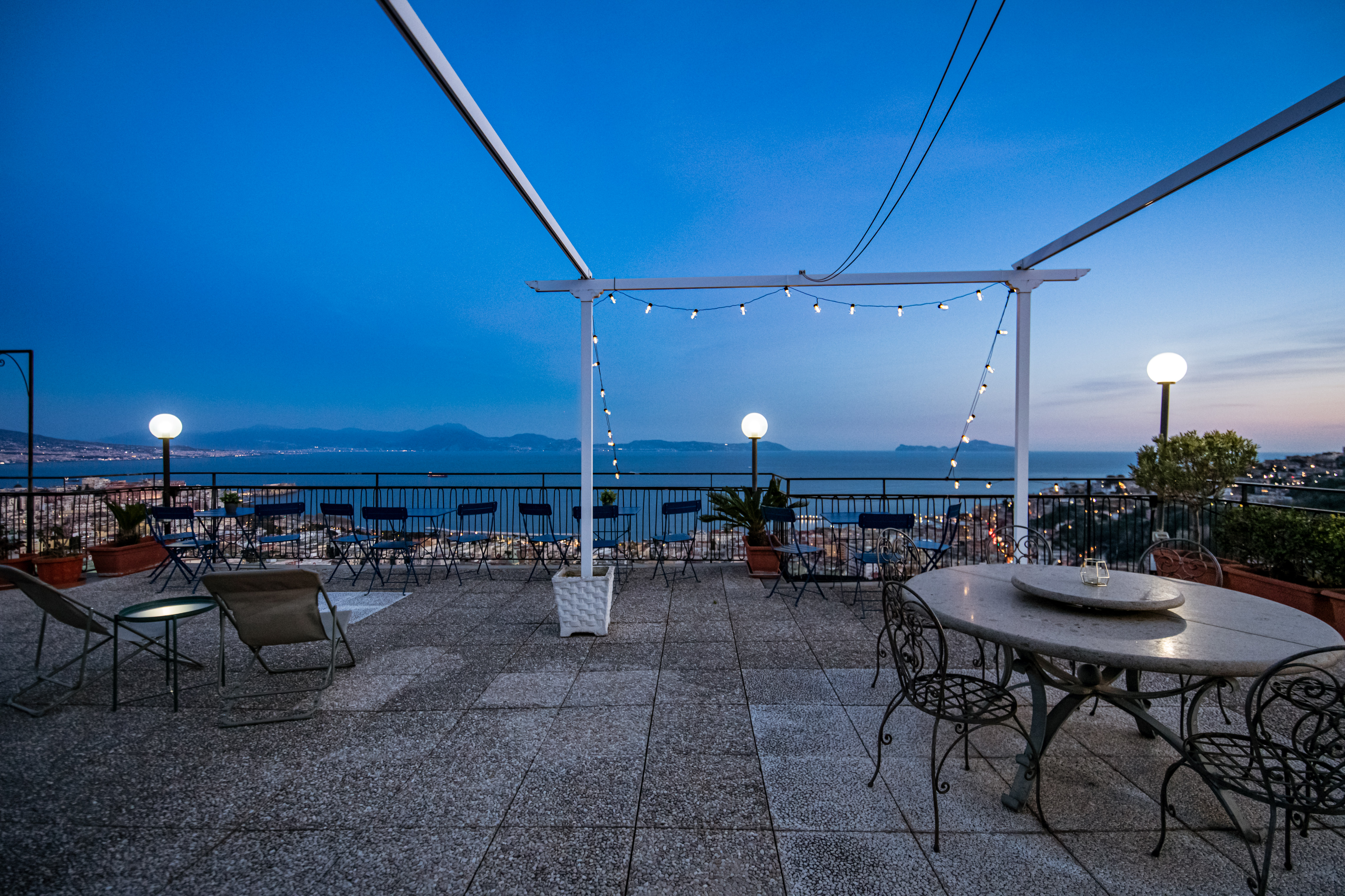 Blue Rooftop, nel cuore del Vomero, è una terrazza sospesa tra cielo e mare, con vista sul Golfo di Napoli, Capri e il Vesuvio.