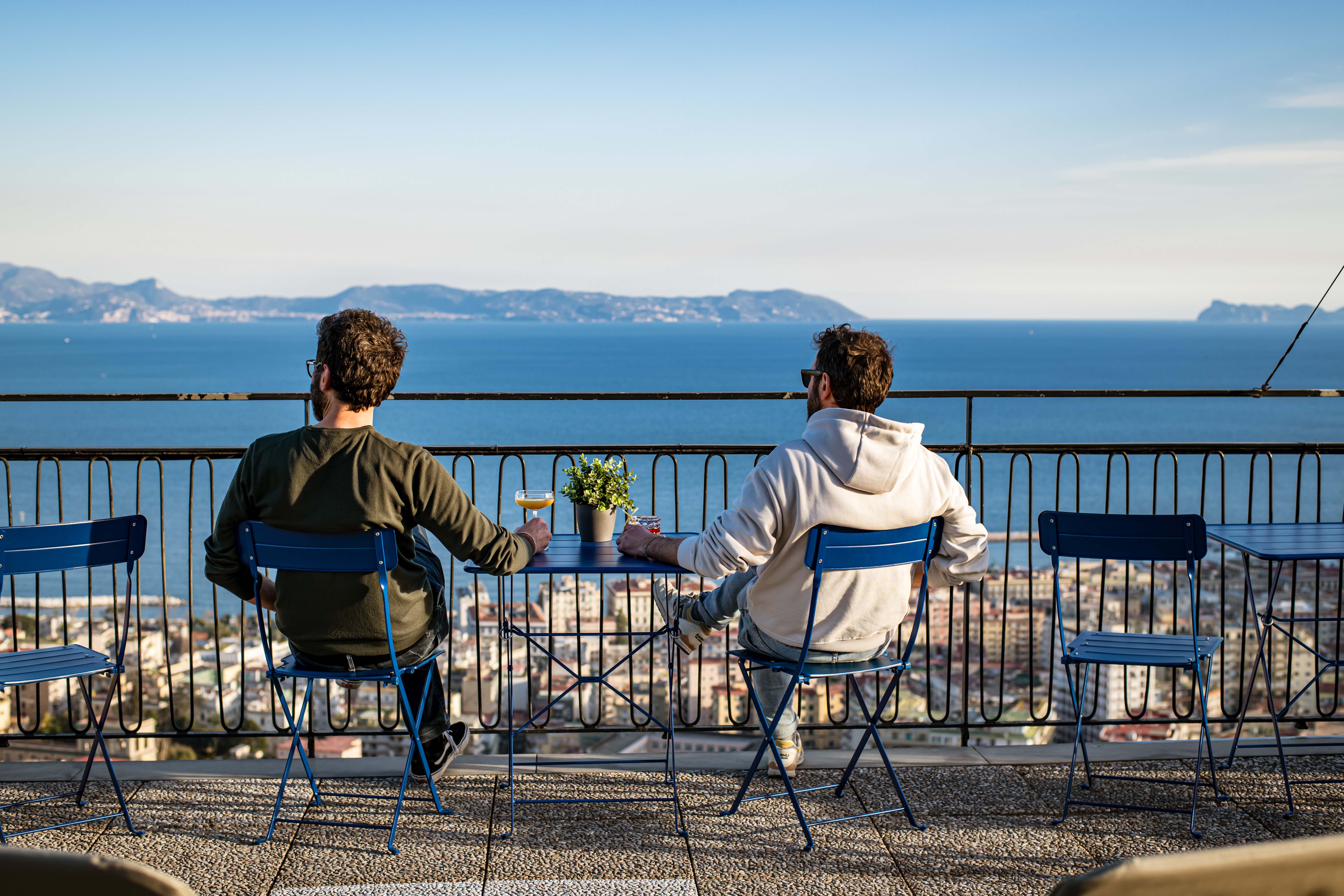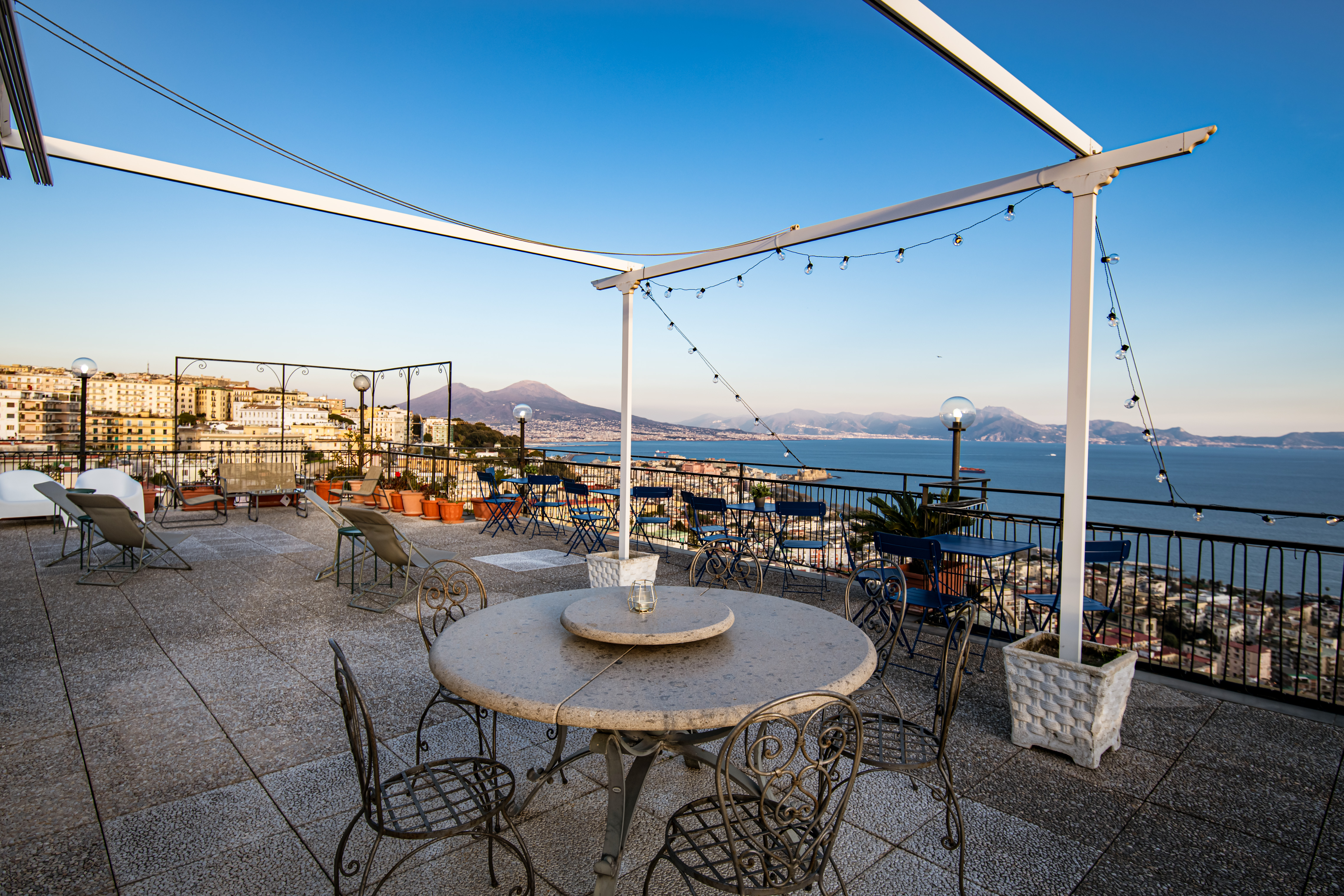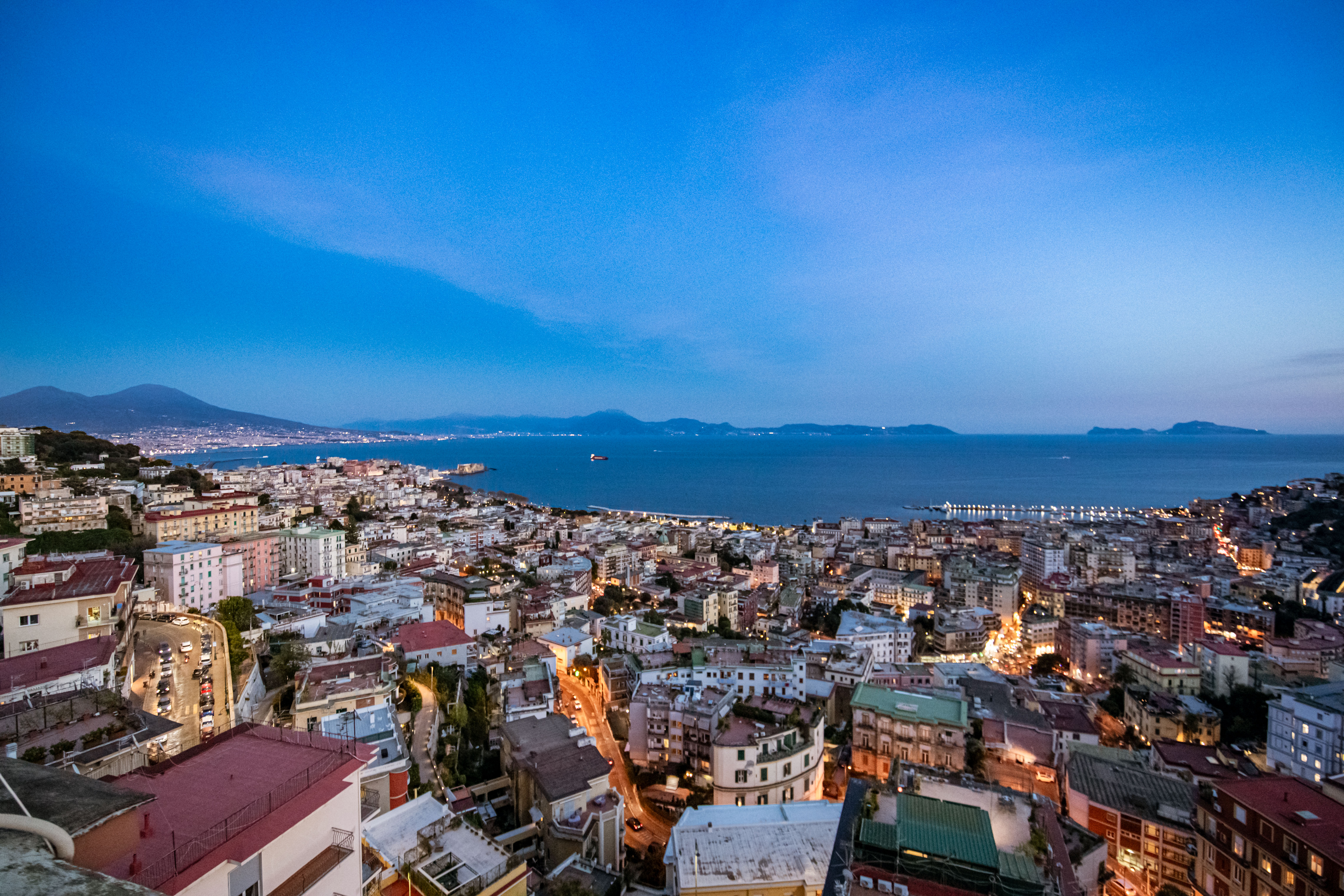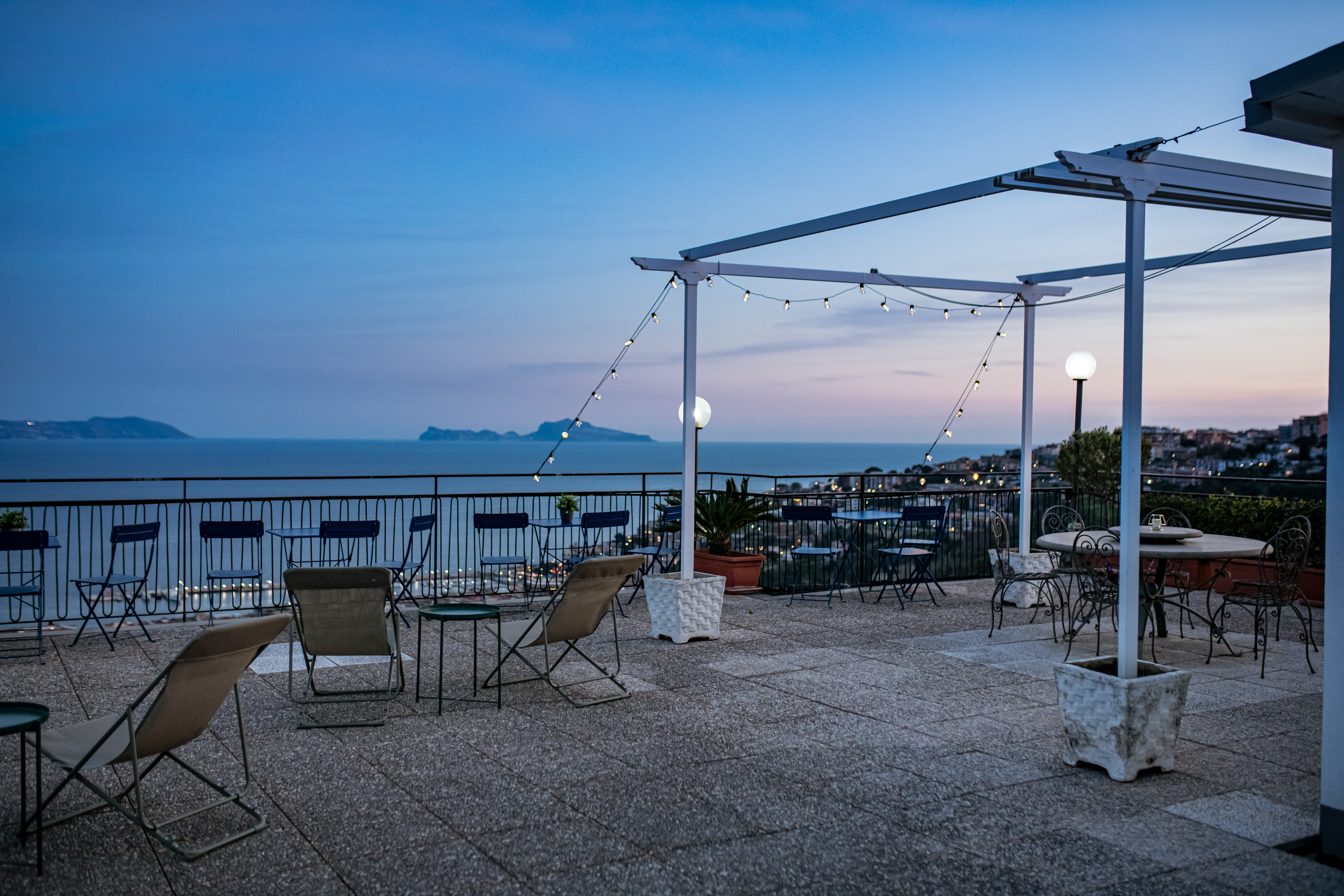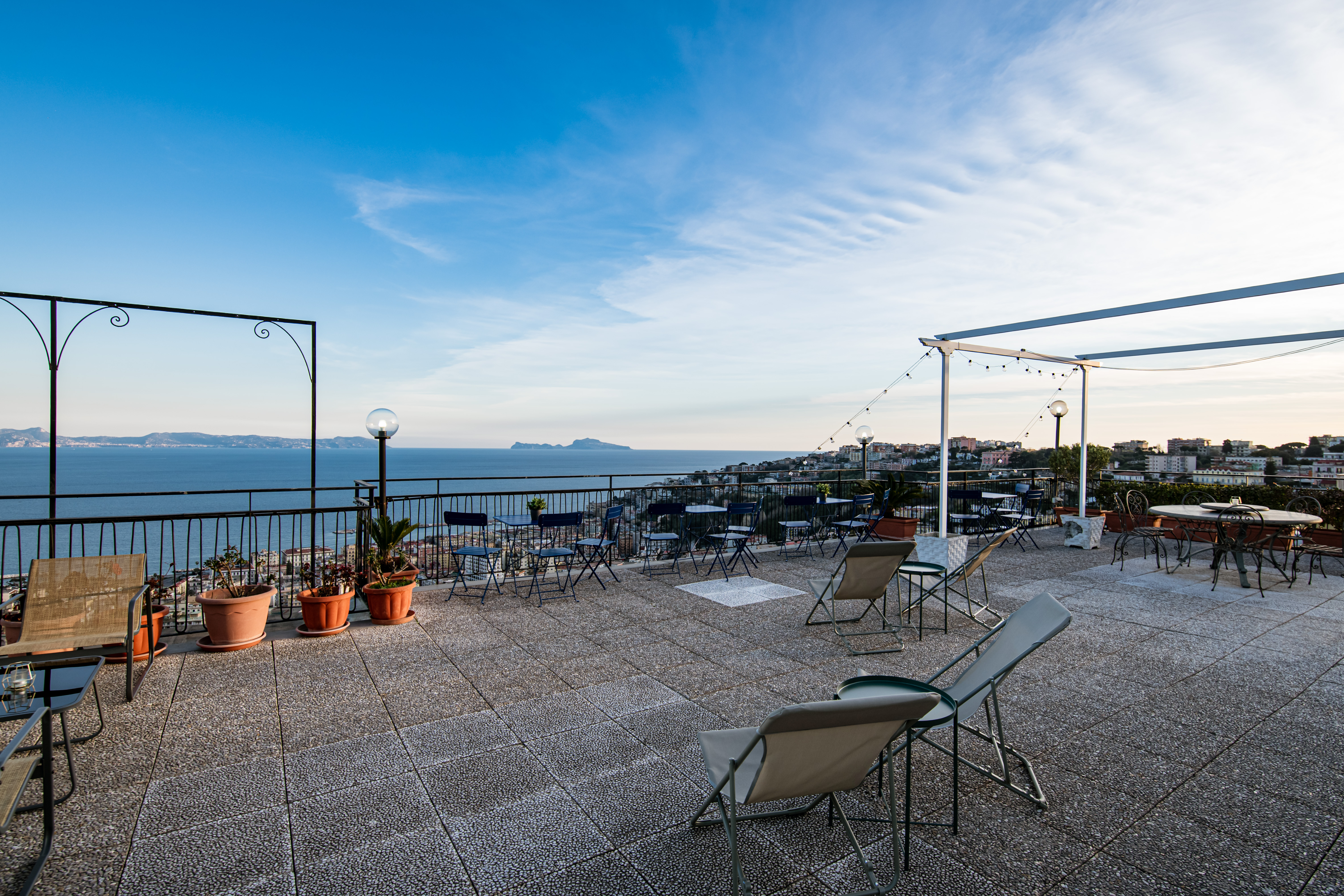 Blue Rooftop, nel cuore del Vomero, è una terrazza sospesa tra cielo e mare, con vista sul Golfo di Napoli, Capri e il Vesuvio.