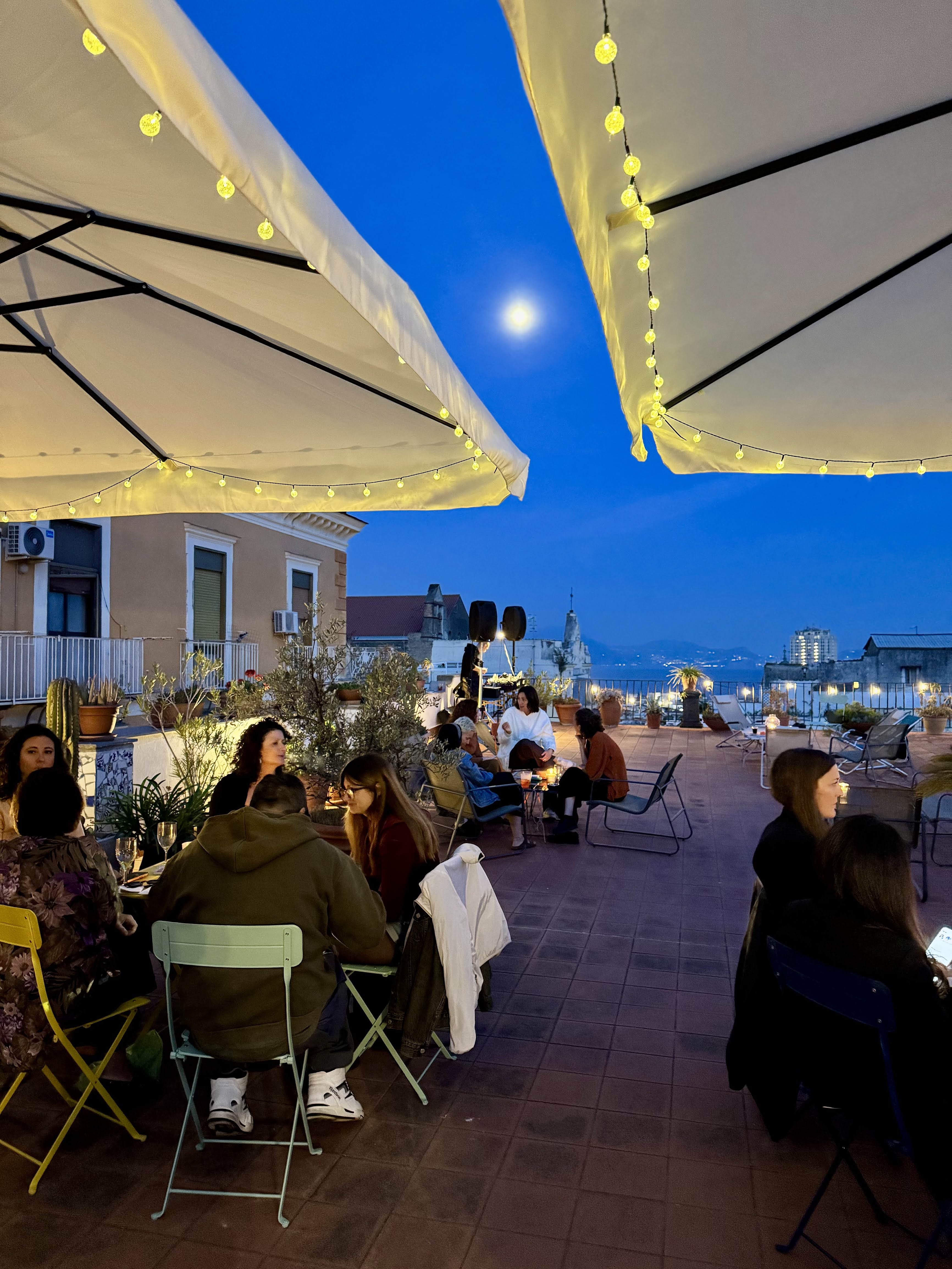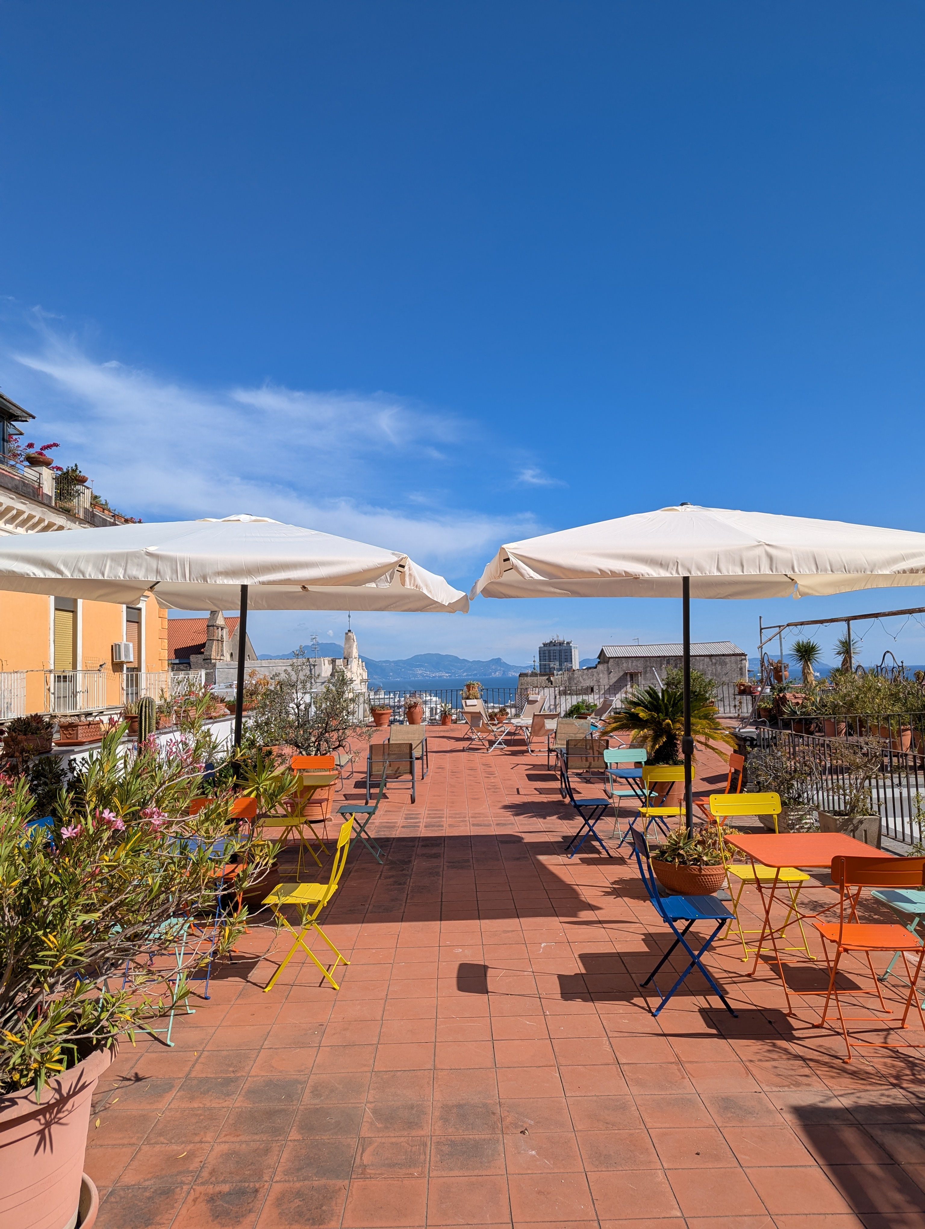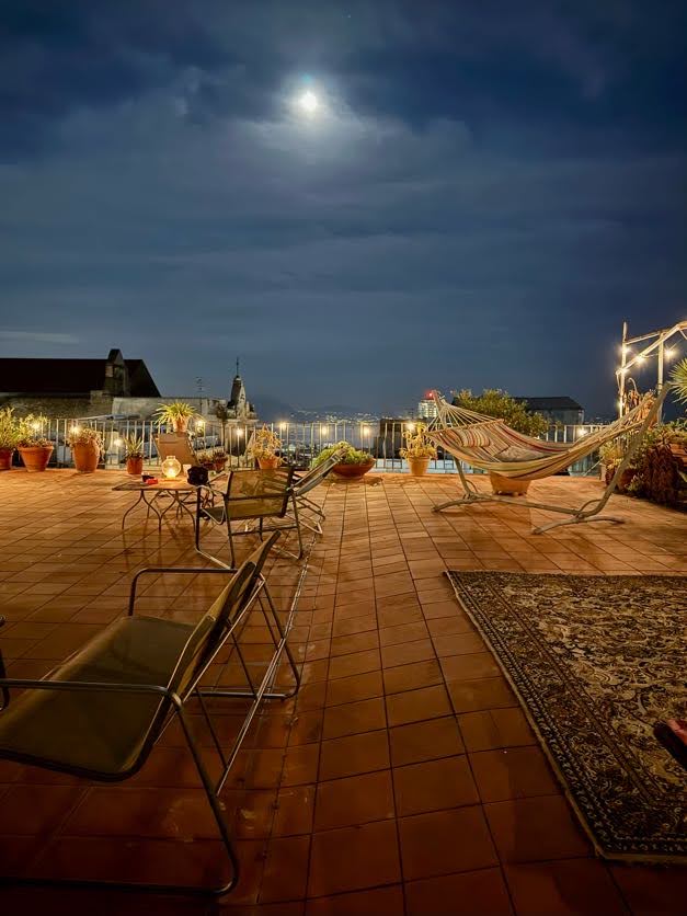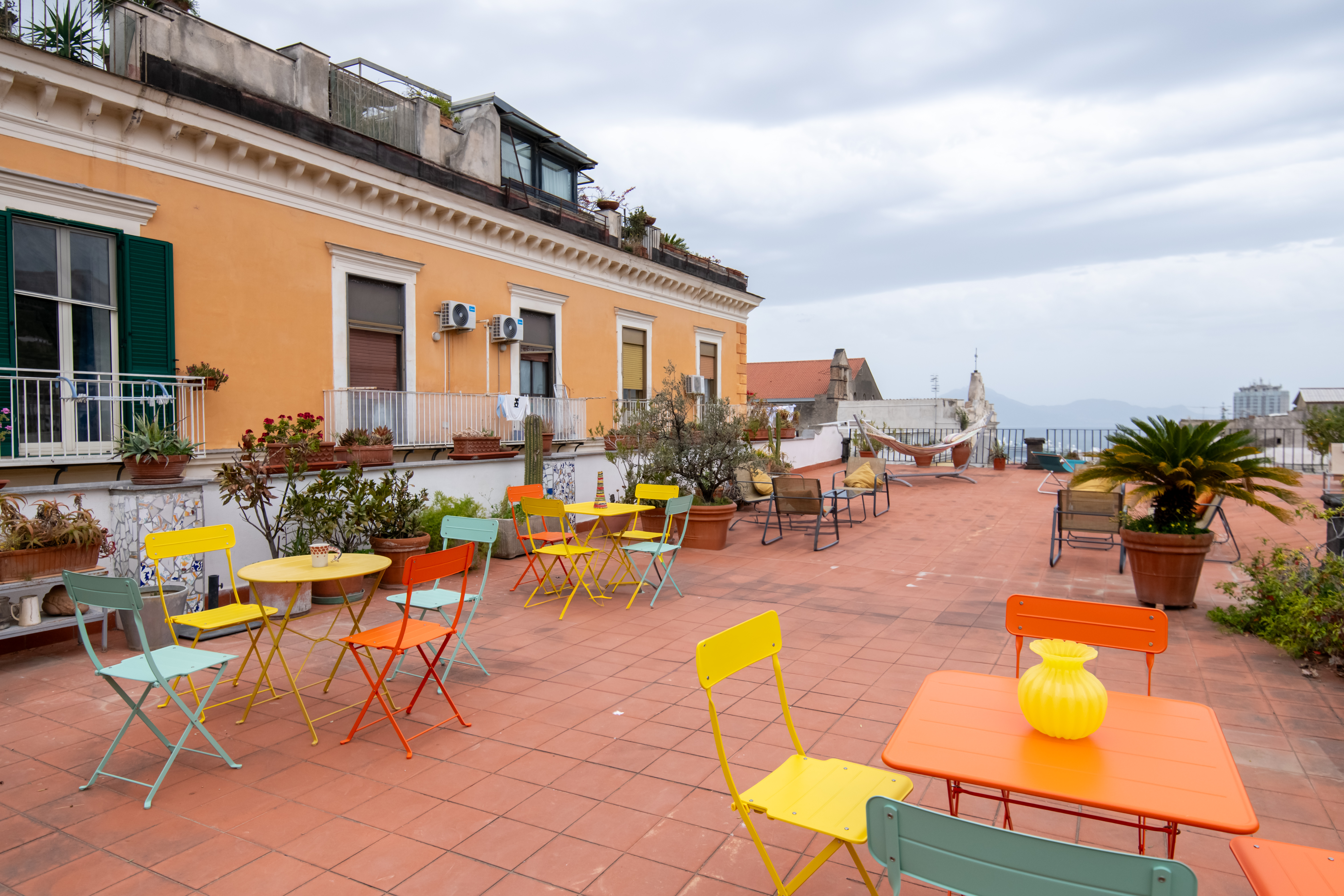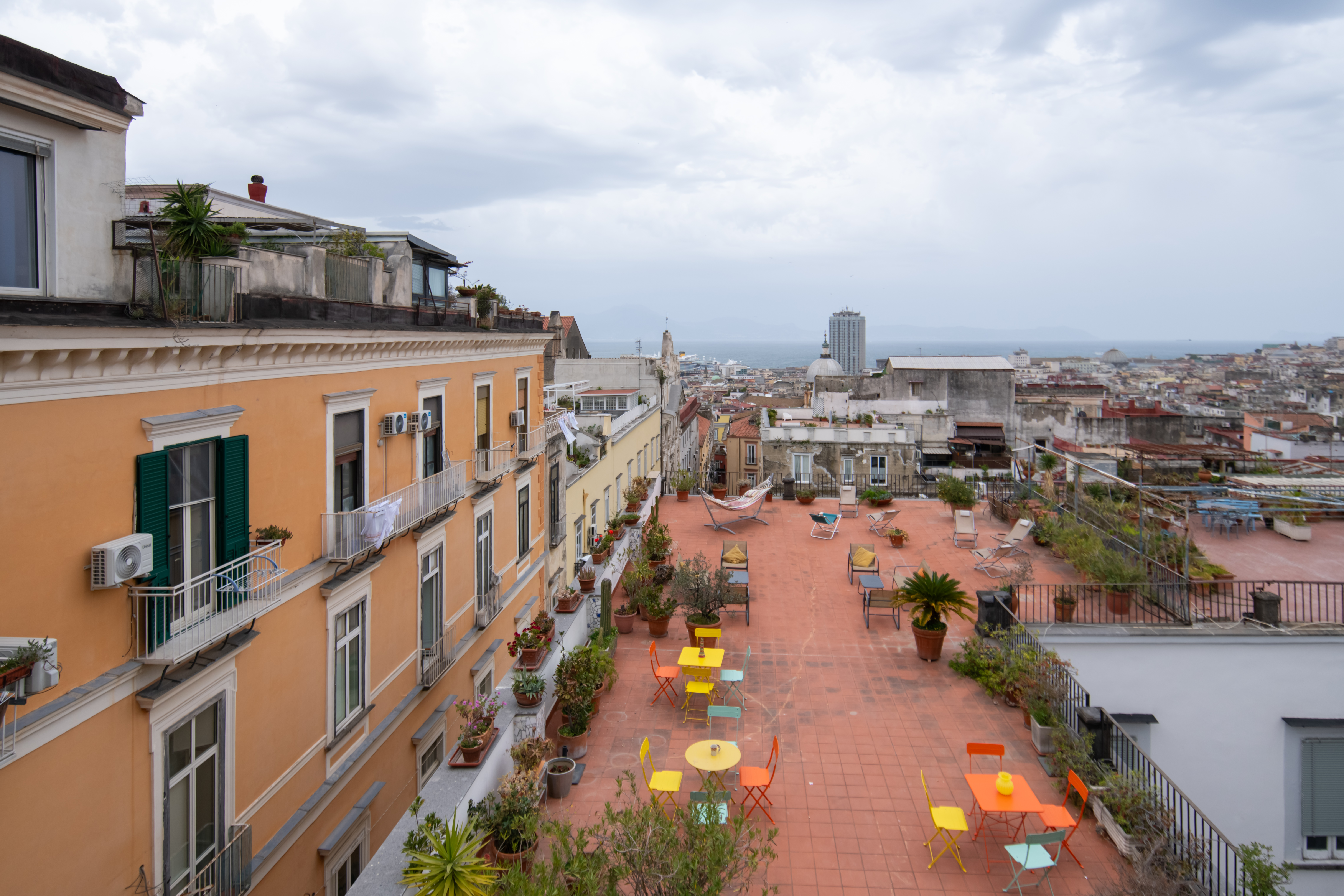 TerraArk, nel cuore pulsante di Napoli, è una terrazza che si affaccia sul Centro Storico, con una vista che spazia da Capri a Castel Sant’Elmo. Un luogo autentico, colorato e accogliente, dove l’energia del quartiere incontra la tranquillità di uno spazio all’aperto unico nel suo genere.